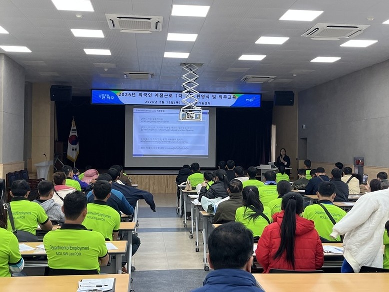 이번 1차 입국을 통해 2월 12일 라오스 국적 외국인 계절근로자 48명이 파주시에 입국했다. 시는 입국 당일 인천국제공항에서 근로자들을 맞이한 뒤 파주시농업기술센터로 이동해, 의무교육과 건강검진, 임금 통장 개설 등 초기 정착을 위한 행정 절차를 일괄적으로 진행하며 근로 여건 조성에 만전을 기했다.