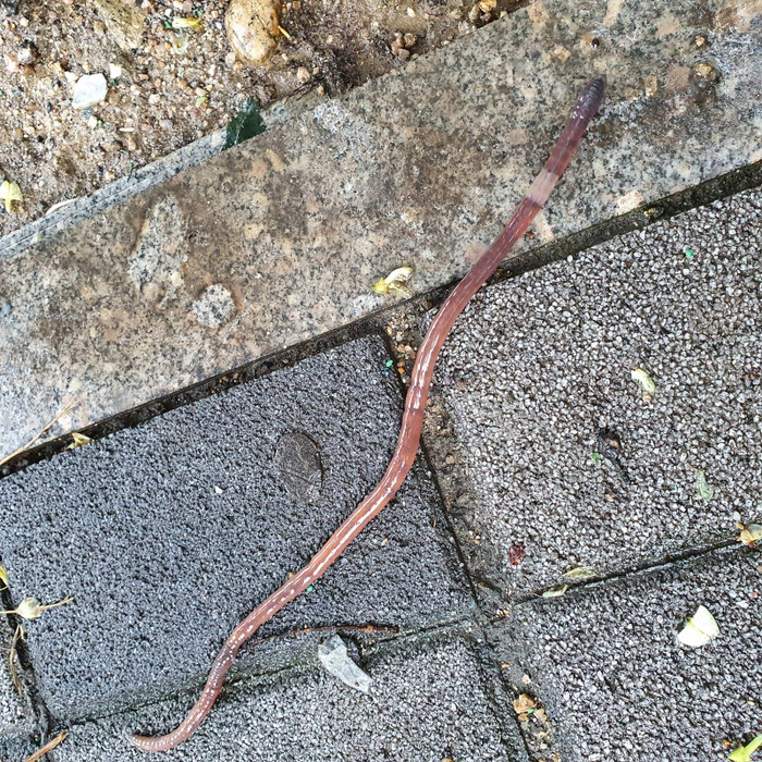 [곽중희 기자] 2020년 8월 9일 오후 3시 한바탕 호우가 지난 후 서울 동작구 신대방동 도림천 근방. 지렁이 한마리가 땅을 기고 있다. 흙속에 사는 지렁이는 땅 속에 빗물이 차면 호흡에 어려움울 겪어 숨을 쉬기 위해 땅 밖으로 나온다. 그래서 비가 온 후에 땅에서 지렁이들을 많이 목격할 수 있다.