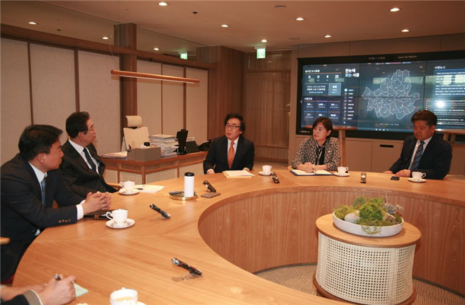 | ▲ 상암 DMC롯데쇼핑몰 인허가 방안 촉구 관련 시장실 면담 중인 김기덕 시의원(‘19.4.10.) |