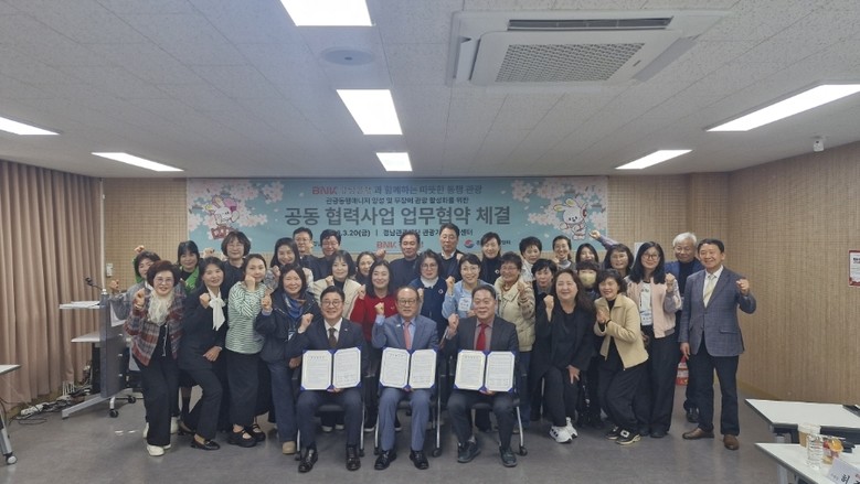 - 관광 취약계층 이동 지원·여행 동행 서비스 인력 양성 [세계타임즈=경남 최성룡 기자] 경남관광재단은 20일 경남관광기업지원센터 대회의실에서 BNK경남은행, 경남관광협회와 함께 ‘경남형 관광동행매니저 양성 및 무장애관광 활성화를 위한 공동 협력사업 업무협약(MOU)’을 체결했다고 밝혔다.