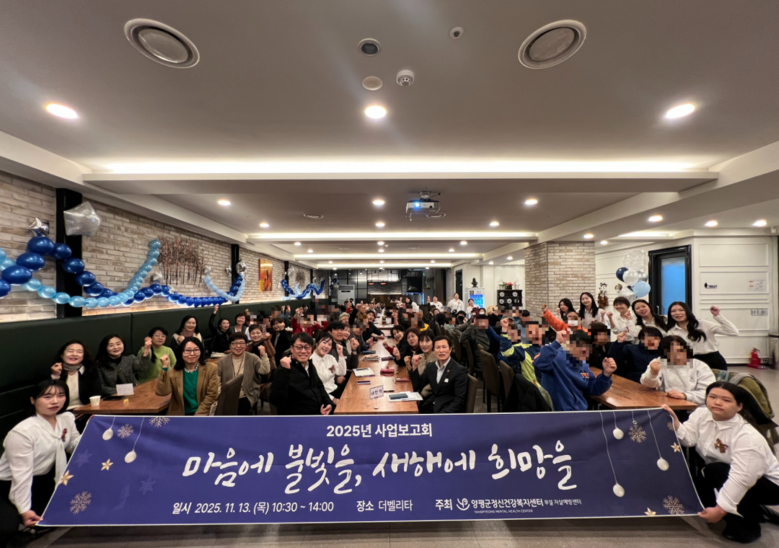 [양평군 세계타임즈=송민수 기자] 양평군정신건강복지센터(부설 자살예방센터)는 지난 13일 양평 더벨리타 웨딩컨벤션에서 ‘2025년 사업보고회: 마음에 불빛을, 새해에 희망을’을 성황리에 개최했다. 이날 행사에는 센터 이용자와 가족, 자원봉사자, 유관기관 실무자 등 160여 명이 참석해 한 해의 성과를 돌아보고 서로를 격려하는 시간을 가졌다.