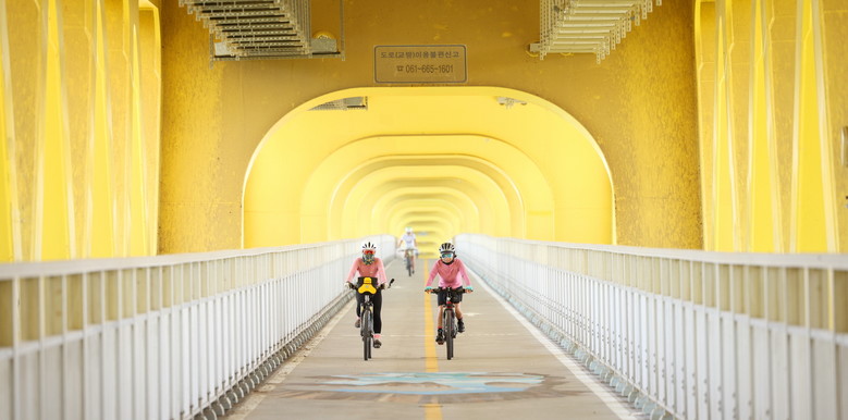 | ▲ 거금대교 1층 자전거 보행자 도로에서 자전거 동호인들이 라이딩을 즐기는 모습 |