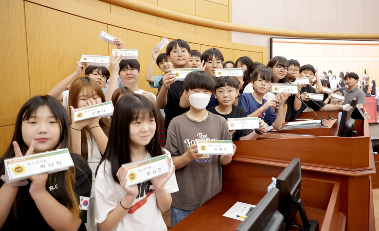 [대전 세계타임즈=이채봉 기자] 대전목상초등학교 학생들이 5일, 대전시의회(의장 조원휘)를 방문해 1일 시의원 역할을 맡아 의정활동을 직접 경험하며 민주주의의 현장을 체험했다.