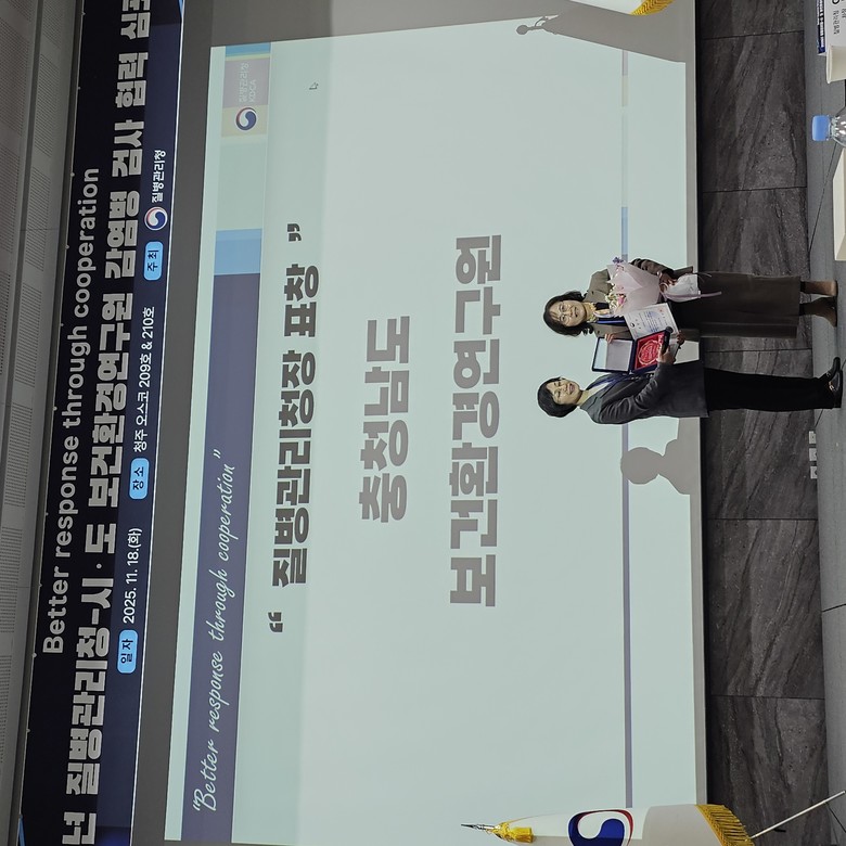 도 보환연은 18일 청주 오스코에서 열린 ‘2025 질병관리청-시도 보건환경연구원 감염병 검사 협력 심포지엄’에서 ‘감염병 검사 분야’ 유공기관으로 선정돼 질병관리청장 기관 표창을 수상했다고 밝혔다.