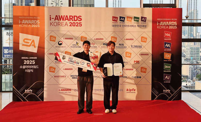 [강원도 세계타임즈=김민석 기자] 강원특별자치도(도지사 김진태)와 강원관광재단(대표이사 최성현)은 7월 24일(목), 서울 양재 엘타워에서 열린 대한민국 소셜인터넷서비스(SNS) 혁신대상 시상식‘소셜아이어워드 2025’에서 여행·관광 부문 인스타그램 최우수상을 수상했다고 밝혔다.