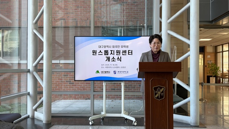 ▸ 대구시 RISE 사업 연계… 계명대 주관으로 유학생 학업 및 생활지원 강화 [세계타임즈=대구 한윤석 기자] 대구광역시는 11월 18일(화) 오후 2시 30분, 계명대학교 동영관에서 ‘대구광역시 외국인 유학생 원스톱지원센터’ 및 ‘거점 한국어센터’ 현판식을 가졌다.