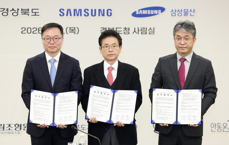이날 협약식에는 이철우 경북도지사를 비롯해 삼성물산 송규종 사장, 김홍락 상무, 삼성생명 이경민 고문, 삼성전자 정효명 부사장, 하헌재 상무 등 삼성 주요 임원진과 청년단체 대표 등 50여 명이 참석했다.
