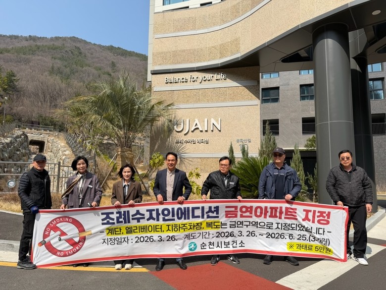 [순천시 세계타임즈=우덕현 기자] 순천시는 지난 26일 조례동 소재 조례수자인에디션 아파트를 제19호 공동주택 금연구역(이하 ‘금연아파트’)으로 지정했다고 밝혔다.