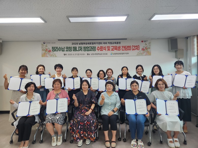남원여성새로일하기센터장(김미옥)은 “직업교육훈련이 프로그램으로만 그치는 것이 아니라 지속적인 사후관리로 수료생들이 지역사회에서 경제활동을 할 수 있도록 최선을 다해 지원하겠다. 체계적인 정리수납 전문지식과 기술을 습득한 수료생들이 정리수납 코칭 매니저로 활동할 수 있도록 지역사회의 많은 관심을 바란다”라고 밝혔다.