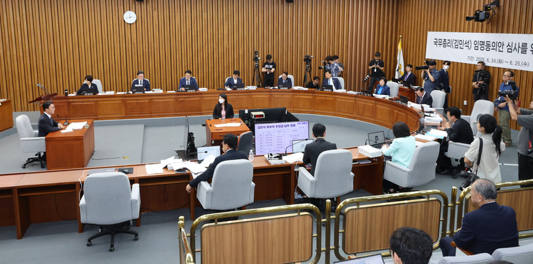 [세계타임즈 = 진정화 기자] 김민석 국무총리 후보자에 대한 24일 국회 인사청문회는 고성과 막말로 시작됐다.더불어민주당과 국민의힘은 증인 채택 협상의 결렬 경위와 김 후보자의 자료 제출 상황 등을 놓고 시작부터 격돌했다.
