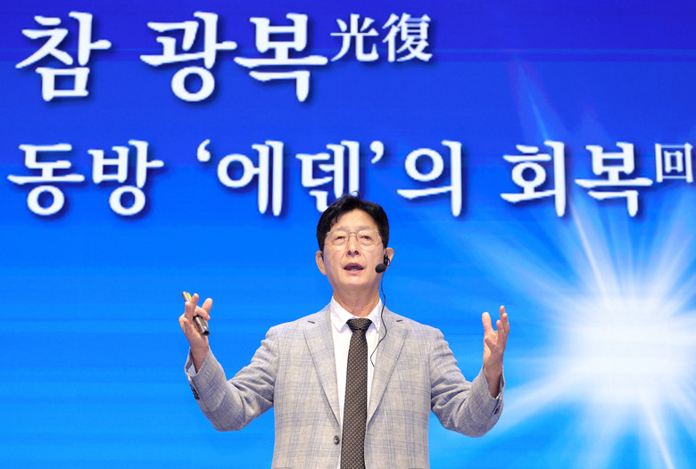 이날 이 발행인은 특별강연에서 광복의 표면적 의미와 이면적 의미의 구분을 강조했다. 이 발행인은 “참 광복이라고 하는 것은 한자 ‘光復(빛 광, 회복할 복)’의 의미대로 있어지는 광복이 진정한 광복이 된다”면서 ‘참 광복’의 의미를 되짚었다.