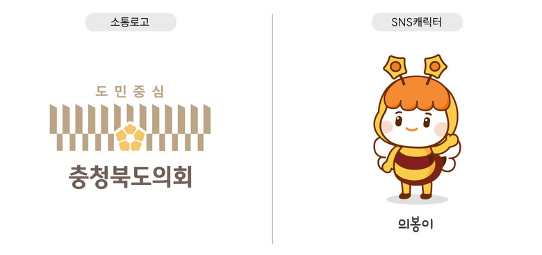 소통로고는 내년 개청 예정인 도의회 신청사 외관을 모티브로 삼아 ‘도민 중심 의회’를 표현했으며 SNS 캐릭터 ‘의봉이’는 의회의 앞 글자 ‘의’와 벌의 한자 ‘봉(蜂)’을 합친 이름으로 도민의 소리를 의회에 전달하고 의회의 비전을 도민에게 알리는 소통매개로서의 일벌을 의미한다.