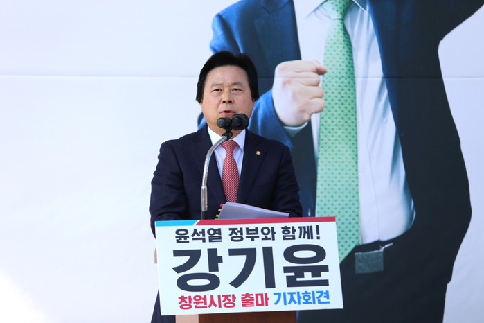 강기윤 의원은 4일 오전 한국산업단지공단 경남지역본부에서 출마 기자회견을 열고 "허성무 창원시정으로 내 집 마련의 꿈은 멀어졌고 원전산업 붕괴로 일자리를 잃었으며, 부동산 정책의 직격탄을 맞았다"고 지적했다.