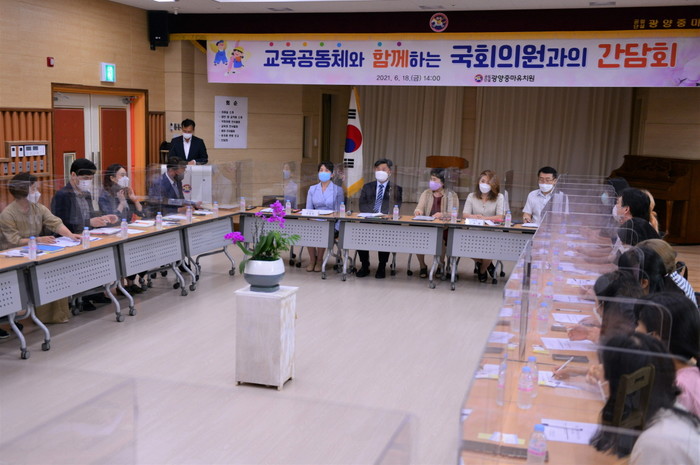 [세계타임즈 심귀영 기자]더불어민주당 서동용 국회의원(국회 교육위원회, 전남 순천·광양·곡성·구례(을))이 18일(금) 오후 전남 광양시 광양중마유치원 간담회를 시작으로 오는 7월 중순까지‘교육공동체 활성화 간담회’를 연속 개최한다.