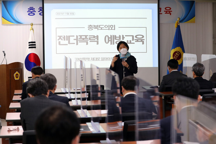 [충북=세계타임즈 이현진 기자] 충청북도의회는 30일 도의회 회의실에서 전체의원을 대상으로 성희롱과 가정폭력 등 4대 폭력예방교육을 실시했다.