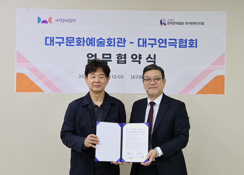 이홍기 대구연극협회장은 “대구문화예술회관과의 협력은 지역 연극인들에게 안정적인 무대와 창작 기회를 제공하는 큰 힘”이라며, “이번 협약을 계기로 원로와 청년이 함께 성장하고, 지역 연극이 세대를 넘어 더욱 활발하게 발전할 수 있기를 기대한다”고 말했다.