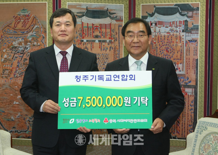 기탁금은 지난 4월 16일 청주시기독교연합회가 주관한 부활절 연합예배에서 교인들의 정성으로 모인 헌금으로, 5월 가정의 달을 맞아 청주지역 저소득 가정에게 전달될 예정이다.