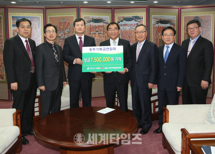 [청주=세계타임즈 이현진 기자] 청주시기독교연합회(회장 박선용)가 28일(금) 오후 3시 30분 청주시를 방문해 성금 750만 원을 기탁했다.