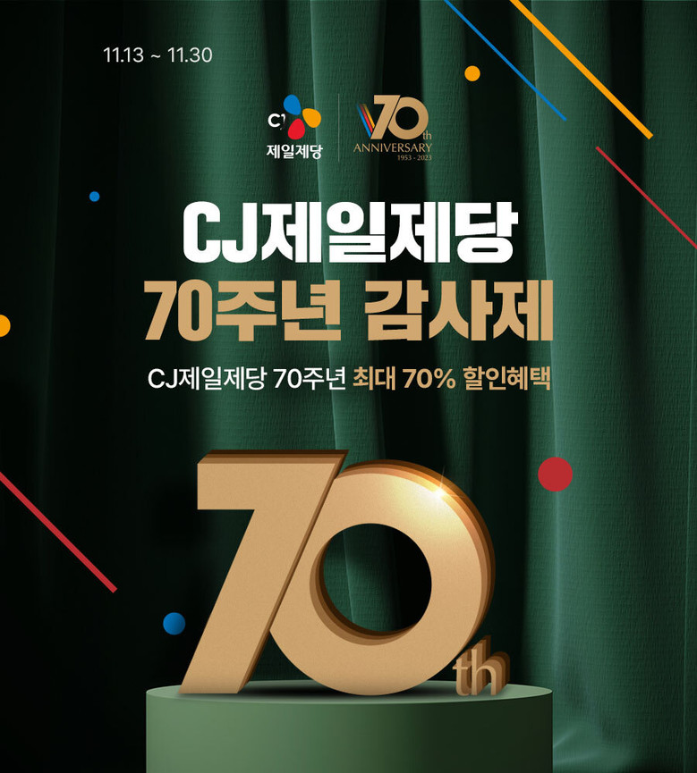 CJ제일제당 관계자는 “창립70주년을 맞아 그간 보내주신 고객 성원에 보답하고자 역대급 할인 프로모션을 마련했다”며, ”앞으로도 이커머스 플랫폼들과의 협업을 통해 소비자들에게 보다 다양한 혜택을 제공하기 위해 노력할 것”이라고 말했다.