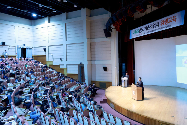 24일까지 이틀에 걸쳐 진행되는 이날 교육은 외식업 종사자들을 대상으로 실시되는 위생교육으로, 일반음식점 기존영업자 1,000여 명이 참석해 친절서비스 교육과 식품위생법 해설, 식품안전관리, 세무관리 등 건강하고 올바른 음식문화 정착을 위해 마련됐다.