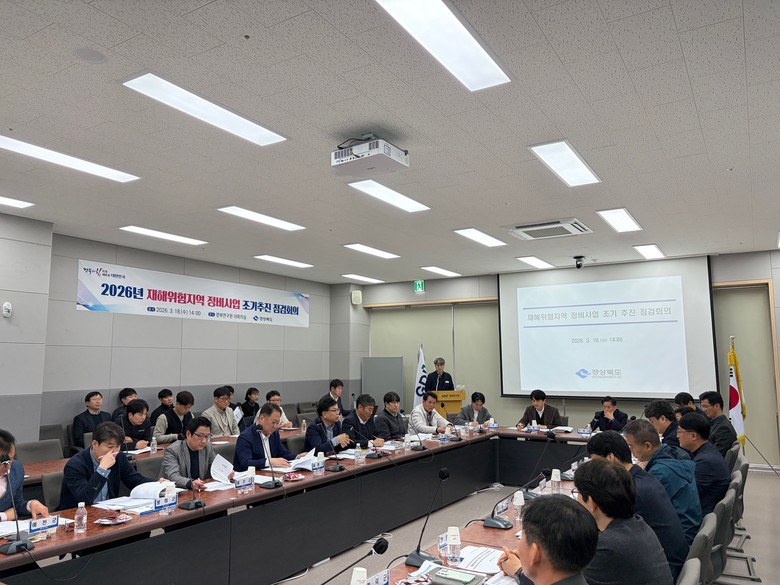 - 사업 조기착공, 사업장 현장안전관리, 2027년 국비확보에 총력 - [세계타임즈=경북 한윤석 기자] 경북도는 3월 18일 ‘2026년 재해위험지역 정비사업 조기 추진점검회의’를 개최했다.