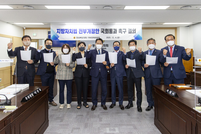 한편, 기획경제위원회는 12월 4일 예산안 심의에 앞서 지방자치법 전부개정안의 국회통과를 촉구하는 결의안을 채택했다. 정부는 21대 국회 개원 이후 올해 7월 지방자치법 개정안을 제출했으며, 이 법안은 12월 3일 국회 행정안전위원회를 통과한 상태다. 현행 지방자치법은 지방자치의 이념이나 본질과는 달리 지방자치단체의 입법권과 행정권을 구속하여 지방분권 실현을 가로막고 있다는 평가를 받아왔다.