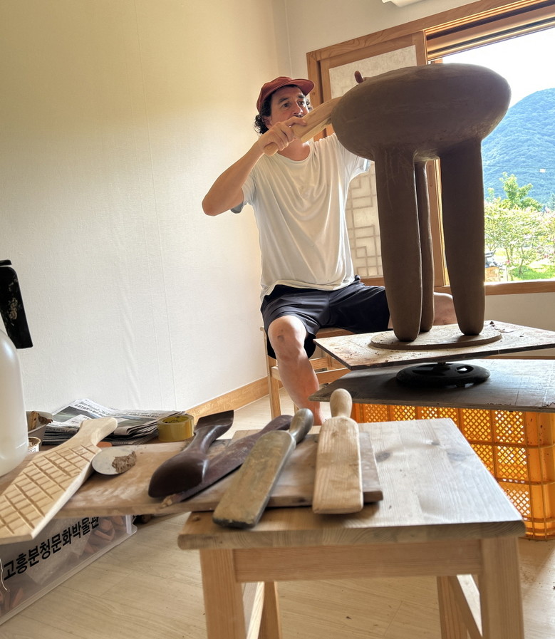 지난 7월 가장 먼저 고흥에 입주한 에콰도르 출신 도예가 토마스 카르피오(Tomás Carpio)는 현재 분청문화박물관 내 전통 한옥 공간 ‘세심헌’에서 창작활동에 매진하고 있다. 그는 남미 안데스 지역의 신화와 전설을 주제로 한 조형 작업으로 국제적으로 주목을 받아온 작가로, 고흥에서는 분청사기 기법과 지역 화장토를 활용해 새로운 작품 세계를 개척하고 있다.