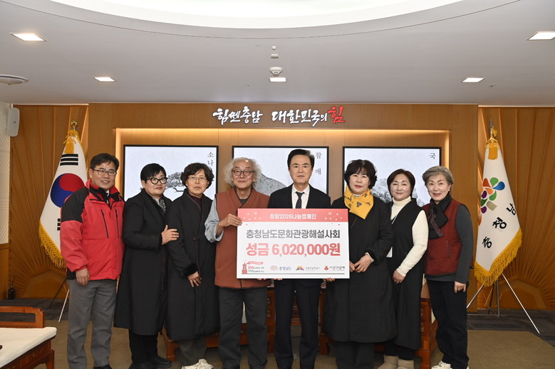 김 지사는 “충남문화관광해설사 분들이 회비를 모아 어려운 시기에 소중한 정성을 표시했다”며 “충남 문화관광의 최일선에서 노고를 아끼지 않는 해설사 분들에게 감사드린다”고 말했다.