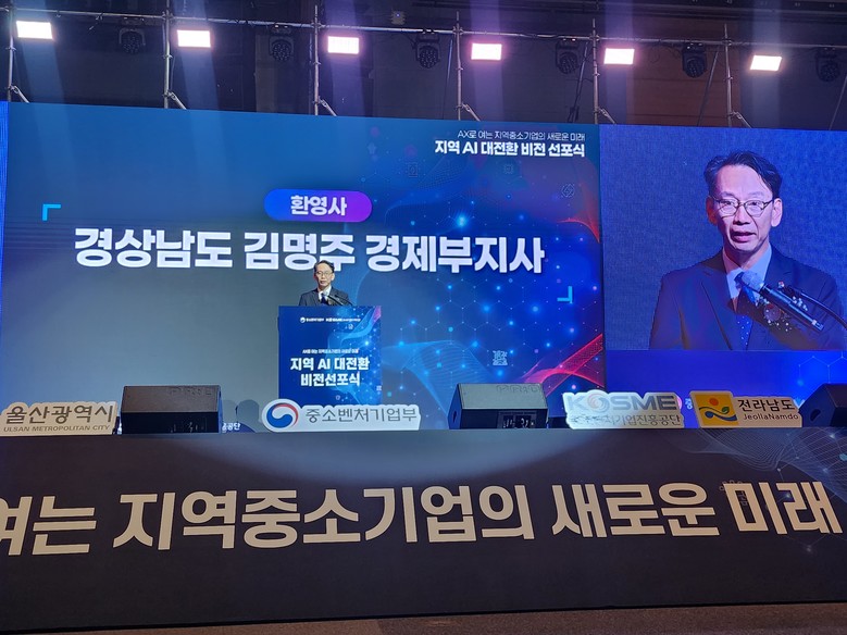 - 제조AI데이터센터 구축, 피지컬AI 예타면제, AX실증산단 구축 등 주요 국비사업과 연계 추진 [세계타임즈=경남 최성룡 기자] 경상남도는 중소벤처기업부 주최(중소벤처기업진흥공단 주관)로 ‘지역 주도형 AI 대전환 사업’ 정부 공모*에 선정된 대구, 울산, 전남, 제주 4개 지자체 등과 함께 19일 창원컨벤션센터에서 ‘지역 인공지능(AI) 대전환 비전 선포식’을 개최했다고 밝혔다.