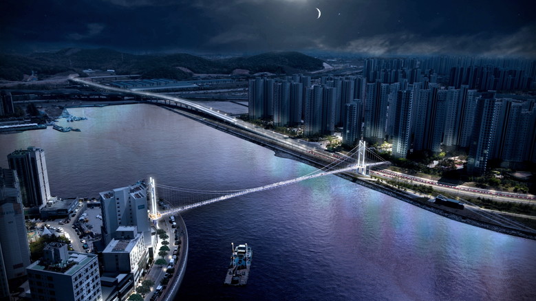 아울러, 시종점부(시설물의 출발 지점과 도착 지점) 전망 공간을 포함해 시야 방해 없이 탁 트인 중앙 전망대를 구성해 이용자 편의를 고려한 공간을 계획했으며, 주변 주거단지와 조화를 이룰 수 있도록 은은하게 비추는 투광등과 풋등을 활용한 야간 경관 조명을 계획했다.
