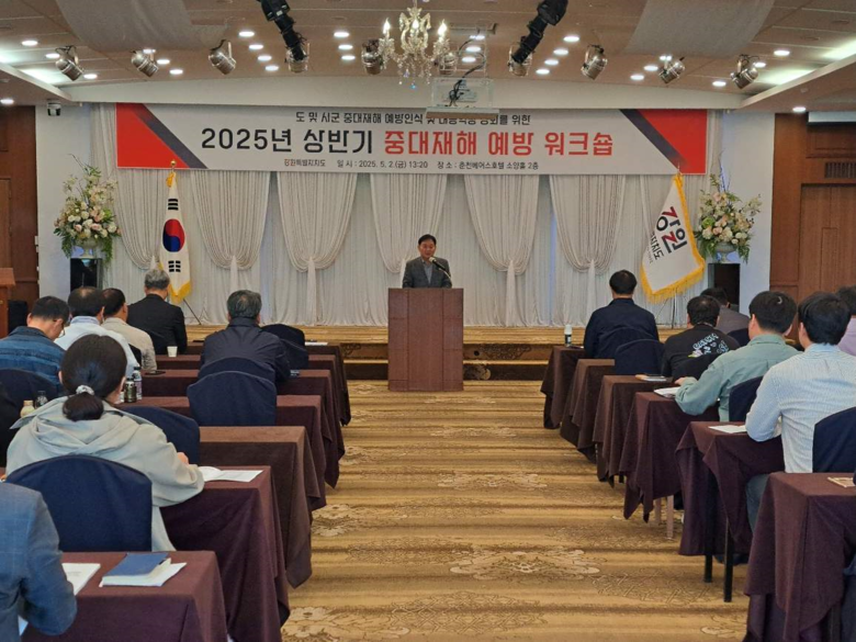 [강원도 세계타임즈=김민석 기자] 강원특별자치도(도지사 김진태)는 5월 2일(금) 오후 1시 20분, 춘천 베어스호텔에서 「2025년 상반기 도·시군 중대재해 예방 워크숍」을 개최했다고 밝혔다.