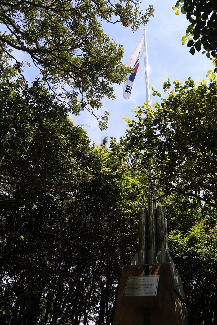 걷다보니 태극기 게양대와 힘차게 펄럭이는 태극기가 나타났다.