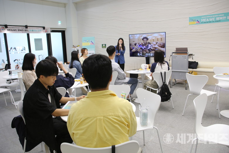 [세계타임즈 = 이진화 기자] 27일 오후 부산광역시 부산역 유라시아 플랫폼 내 부산창업카페 105호에서 부산경제진흥원 주최로 2024 지역주도형 청년일자리 지원사업 일환으로 'ME&WE 행복한 일터,통通하는 조직' 주제의 교육 프로그램이 진행되고 있다.
