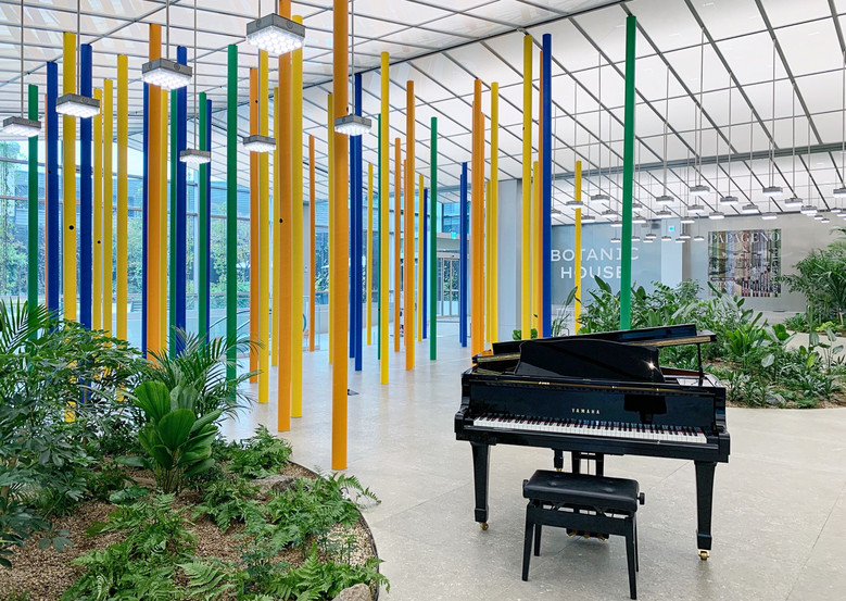 이번 전시는 모차르트의 오페라 '마술피리'에 등장하는 인물 파파게노를 주제로 건축가이자 설치 미술가로 유명한 한원석 작가가 참여했다. 새잡이꾼 파파게노의 새장을 형상화한 5m 높이 기둥 모양 조형물 90여 개가 전시되며, 같은 공간에 70여 종의 새소리를 함께 재생해 마치 자연에 온 듯한 연출을 한 게 특징이다. 방문 고객은 누구나 관람 가능하다.