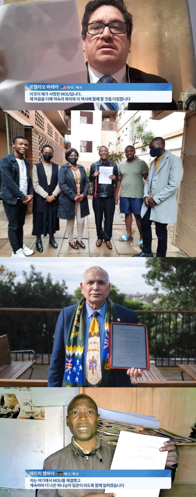 지난 10월 18일부터 12월 23일까지 신천지예수교회에서 요한계시록 전장을 본문으로 ‘하나님의 새 언약 계시록 예언과 성취 증거’ 온라인 세미나를 연 가운데, 강의를 수강한 세계 각국 기독교 목회자들이 신천지예수교회와 업무협약(MOU)를 맺고 있다.