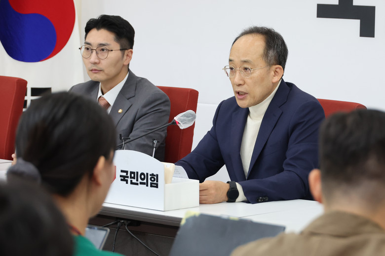 민의힘 추경호 원내대표가 20일 오후 서울 여의도 국회에서 국정감사 및 정치 현안 관련 기자간담회를 하고 있다. 2024.10.20