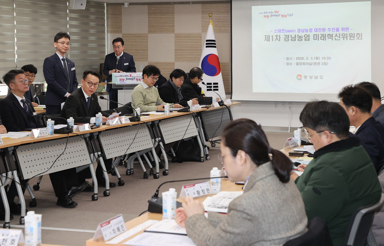 - 현장 의견 반영해 농업 경쟁력과 정책 완성도 제고 [세계타임즈=경남 최성룡 기자] 경상남도는 3일 도청 중앙회의실에서 경남농업 미래혁신위원회 제1차 전체 회의를 열고, 2026년 농정국 주요 업무 추진 방향과 국비 신규사업 발굴 전략을 공유했다고 밝혔다.