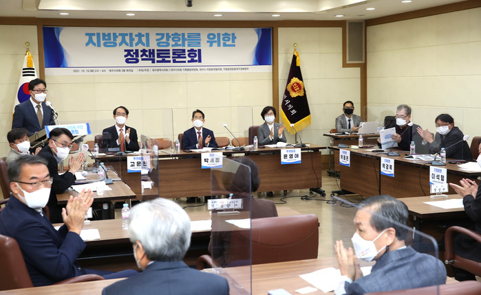 [대구=세계타임즈 한성국 기자] 대구시의회(의장 장상수)가 주최하고 시의회 기획행정위원회(위원장 윤영애), 대구지방분권협의회(의장 이인선), 지방분권운동대구경북본부(대표 이창용)가 공동으로 주관하는 ‘지방자치 강화를 위한 정책토론회’가 10월 19일(화) 오후 2시 대구시의회 3층 회의실에서 열렸다.