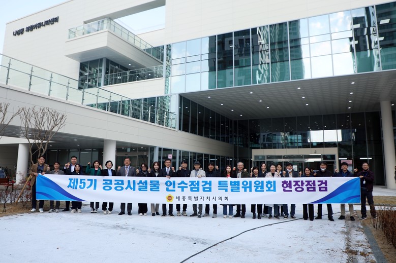 [세종 세계타임즈=이채봉 기자] 세종특별자치시의회(의장 상병헌) 제5기 공공시설물 인수점검 특별위원회 (위원장 이순열)는 8일 새롭게 위촉된 시민참여특별점검반과 첫 상견례를 갖고 내년 개청을 앞둔 나성동 복합커뮤니티센터를 방문해 합동 점검을 실시했다.