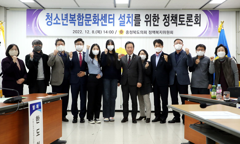 [충북 세계타임즈=이현진 기자] 충북도의회 정책복지위원회는 8일 도의회 7층 회의실에서 ‘청소년복합문화센터 설치를 위한 정책토론회’를 개최했다.