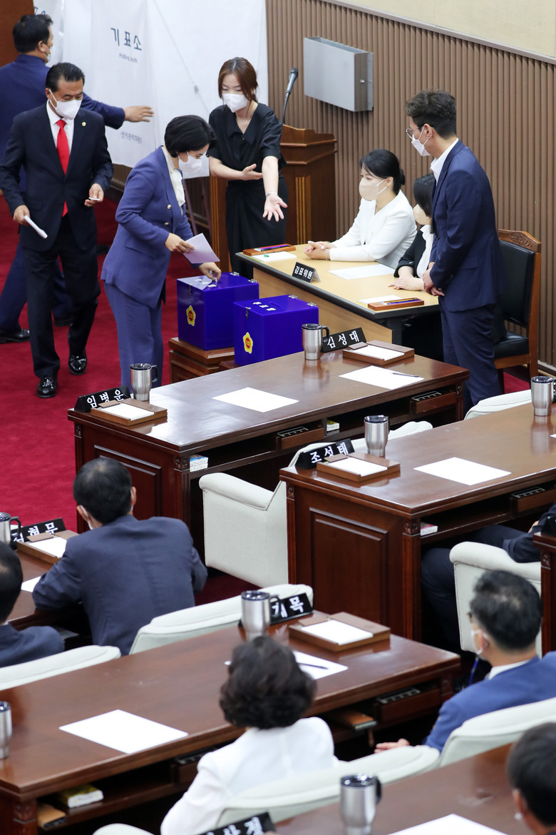 의장단 선출은 재적의원 과반수 출석과 출석의원 과반수 득표로 결정되며, 의장과 부의장이 되고자하는 의원의 정견발표 후 무기명 투표로 진행했다.