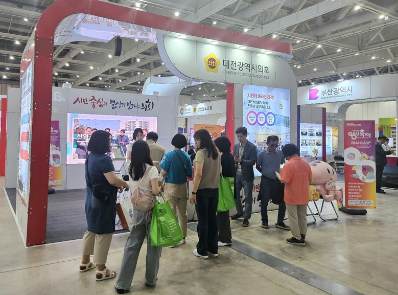 지난 28일 개막해 30일까지 이어지는 이번 박람회에는 전국에서 5개 광역의회, 35개 기초의회 등 40여 개 기관 단체 등이 참여해 성황을 이룬 가운데, 대전시의회는 역동적인 의정활동을 담은 홍보 동영상과 사진으로 홍보부스를 구성 전시해 박람회를 찾은 관람객들의 많은 호응을 얻었다.