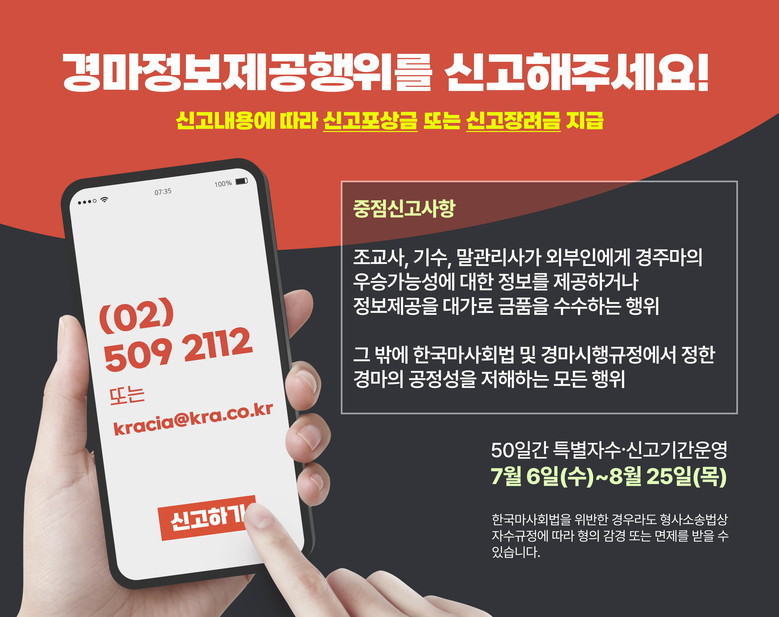 한국마사회, 경마비위 특별자수기간 운영‘경마정보 제공행위를 신고해주세요!’