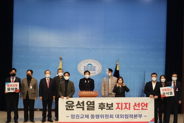 이날 국회 소통관 기자회견장에서 지지 선언 기자회견을 연 이들은 “정권교체는 우리의 역사적 소명이며, 기득권 청산은 우리의 시대적 숙명”이라고 주장했다.