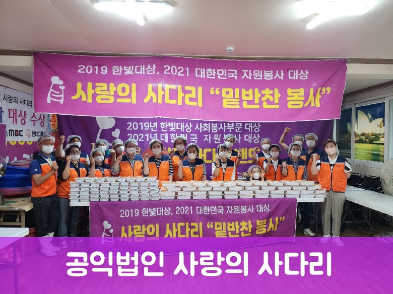 2016년 8월 8일 시작한 공익법인 사랑의 사다리는 지방자치단체의 보조금 지원 없이 대전지역 소외계층을 위해 9년째 다양한 봉사활동을 매월 15회~20회를 실천하고 있다.