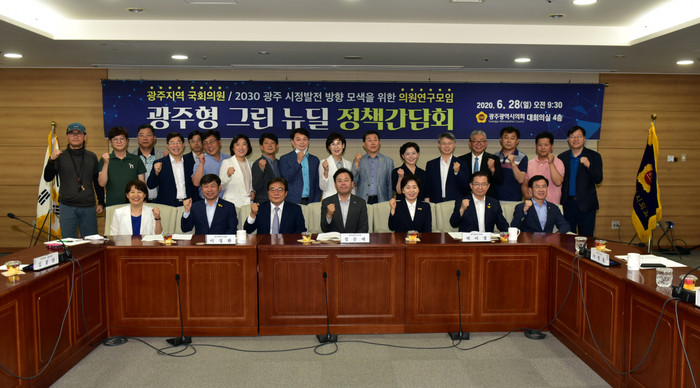 [광주=세계타임즈 손권일 기자] 광주광역시의회 2030광주 시정발전 방향 모색을 위한 의원 연구모임(대표의원 김광란)은 6월 28일 시의회대회의실에서 광주형 그린뉴딜 정책간담회를 광주지역 국회의원(송갑석, 조오섭, 양향자, 윤영덕, 이용빈, 민형배, 이병훈)과 함께 개최했다.
