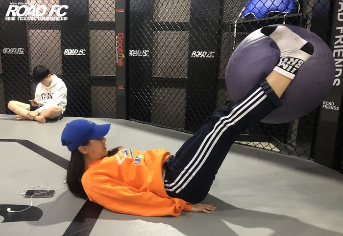 열심히 재활 훈련으로 구슬땀을 흘리고 있는 이수연이 제 48회 ROAD FC 센트럴리그 현장을 방문했다. 김대환 대표, 정문홍 前대표가 출연하고 있는 킴앤정TV에 나와 근황을 전하며 후배들의 경기도 지켜봤다.