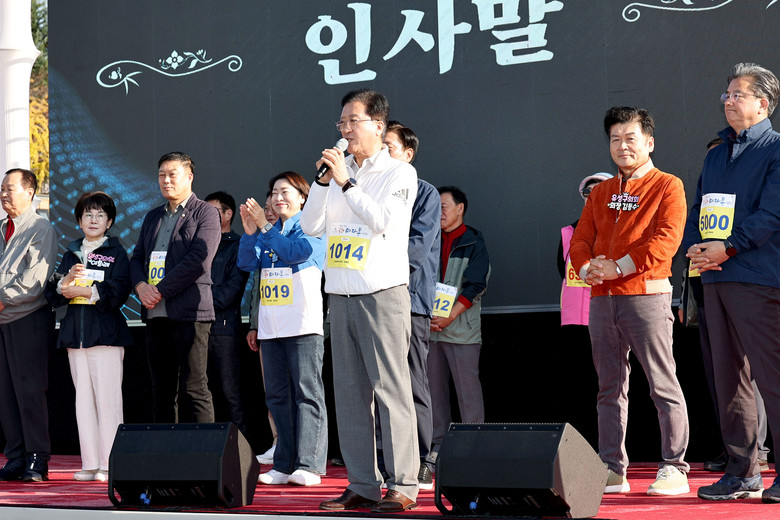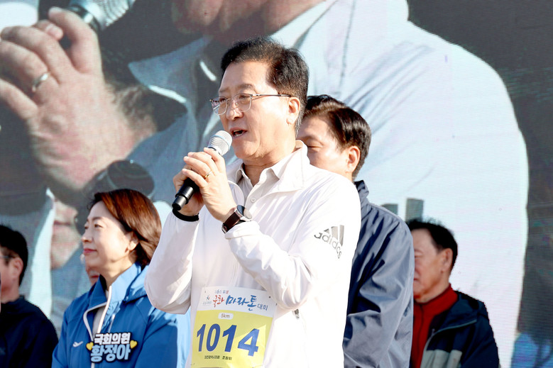 [대전 세계타임즈=이채봉 기자] 대전시의회 조원휘 의장은 3일 ‘제6회 유성국화 마라톤대회’가 열리는 갑천변을 찾아 “가을 정취 물씬 머금은 국화의 아름다움을 느끼며 부상 없이 무사히 완주하시길 바란다”며 참가자들을 응원했다.