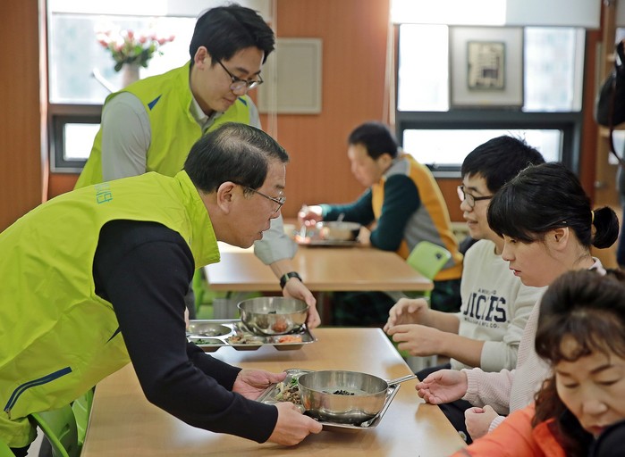 이후 ‘사장님과의 대화’를 마치고 서 사장은 신규직원들과 마포장애인복지관을 찾아 장애우와 그 가족들에게 점심 떡국 배식봉사를 했다. 이번 자원봉사는 서사장이 직접 지시한 것으로 신규직원들과 더 가까이서 소통하기 위함이며, 사랑과 배려를 배우고 그 마음으로 농업인들을 생각하라는 의미를 담았다.