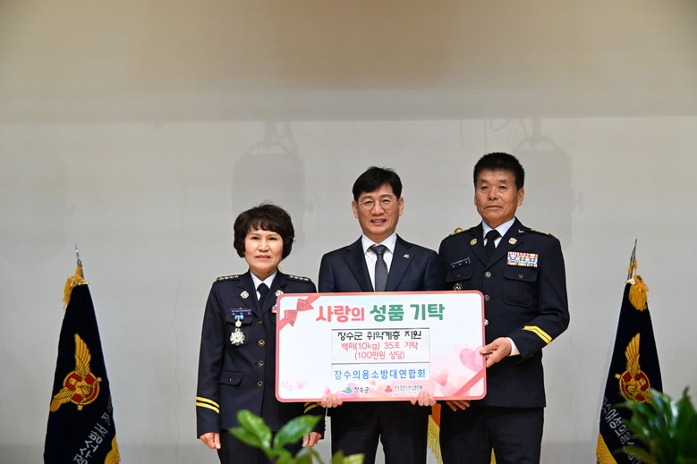 [장수 = 세계타임즈 김서주 기자] 장수군 의용소방대가 지난 26일 ‘제4회 의용소방대의 날 기념행사 및 소방기술경연대회’를 맞아 관내 취약계층에 전달해 달라며 백미(10kg) 35포(100만원 상당)를 기탁했다.